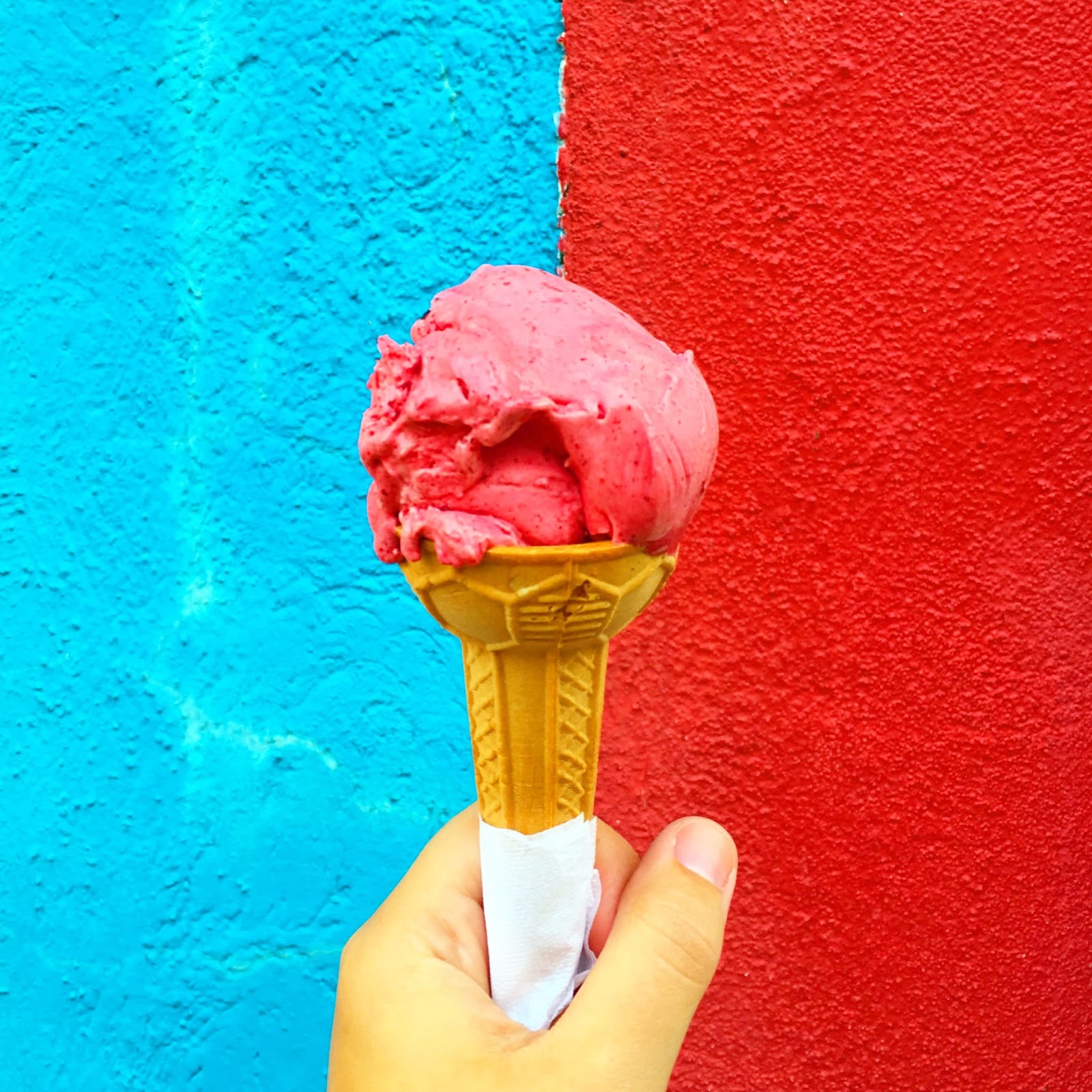 Obviously I had to hold my Fruti di Bosco gelato up to the colorful walls, because #instagram.